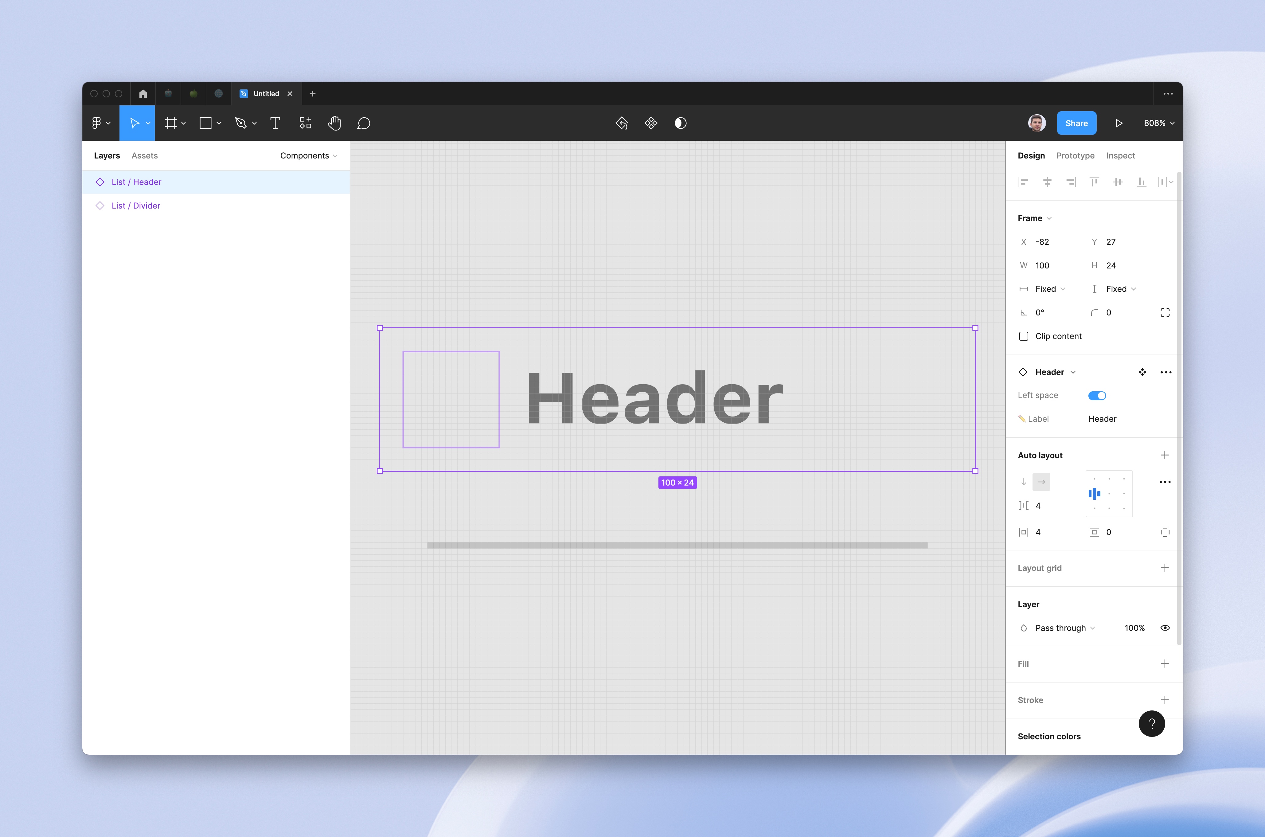 I’m separating the container as a standalone component and will be using Figma’s Position Fixed feature to insert it into the Auto Layout stack. There is a background blur and a subtle border as well Apple’s signature 🤌 shadows.
